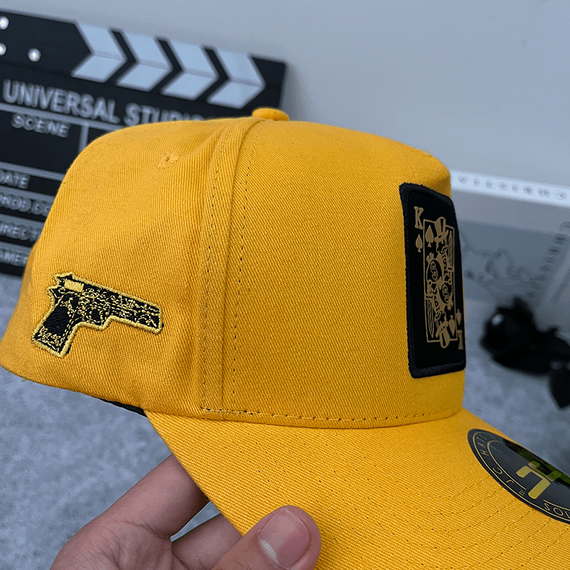 ✔ 3D embroidered gun icon on the side and a black King card symbol on the front for a unique touch.