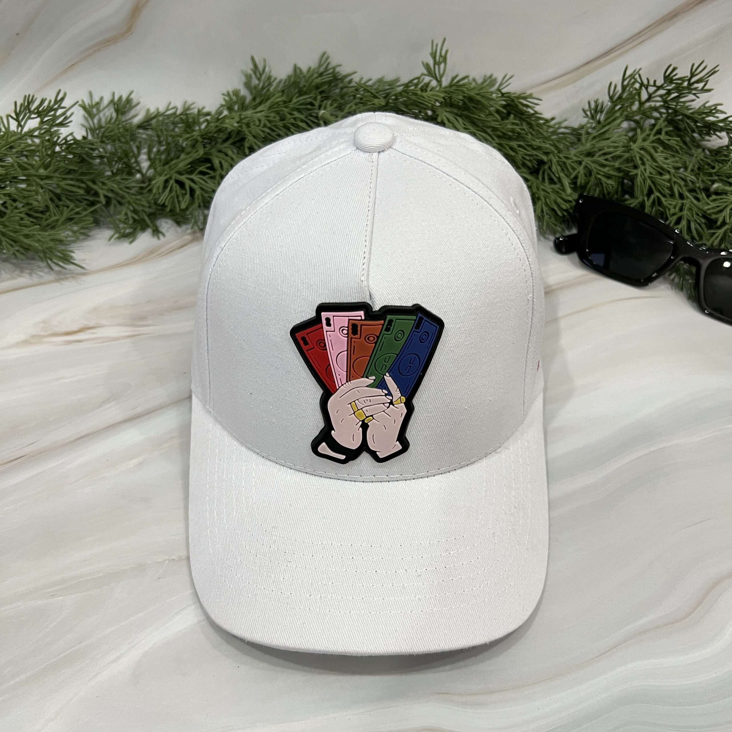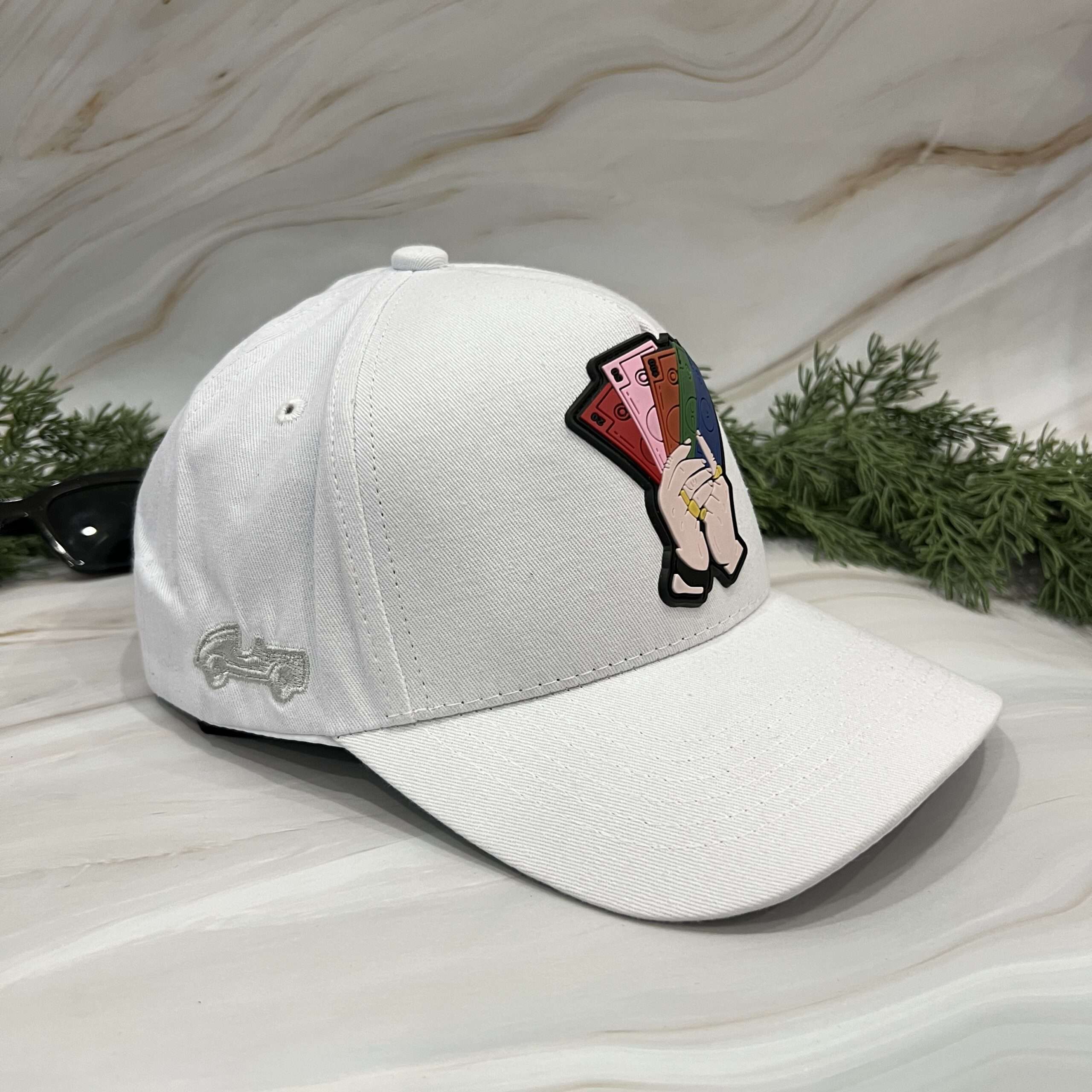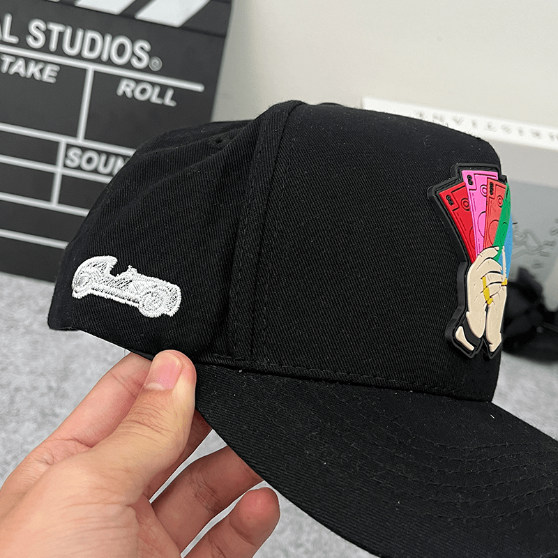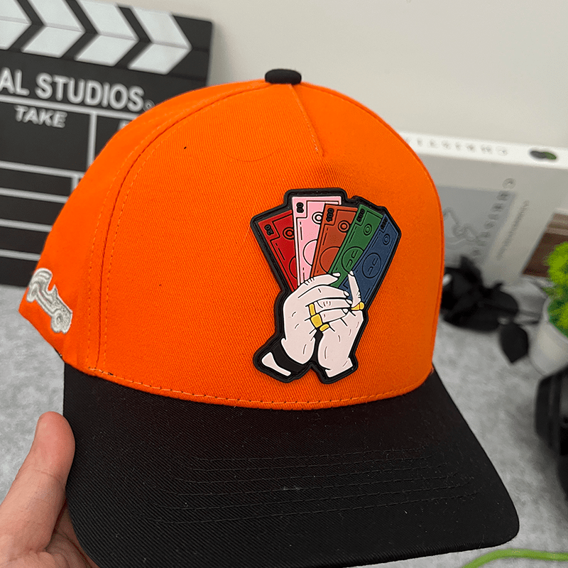 🔹 Crisp black design with an eye-catching hand holding colorful cash patch.