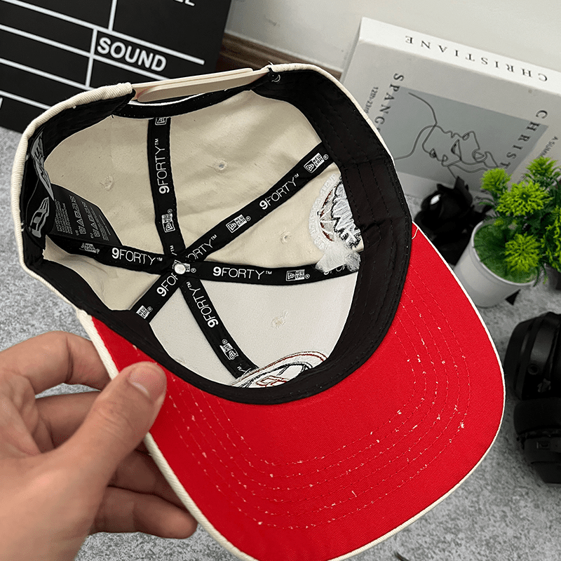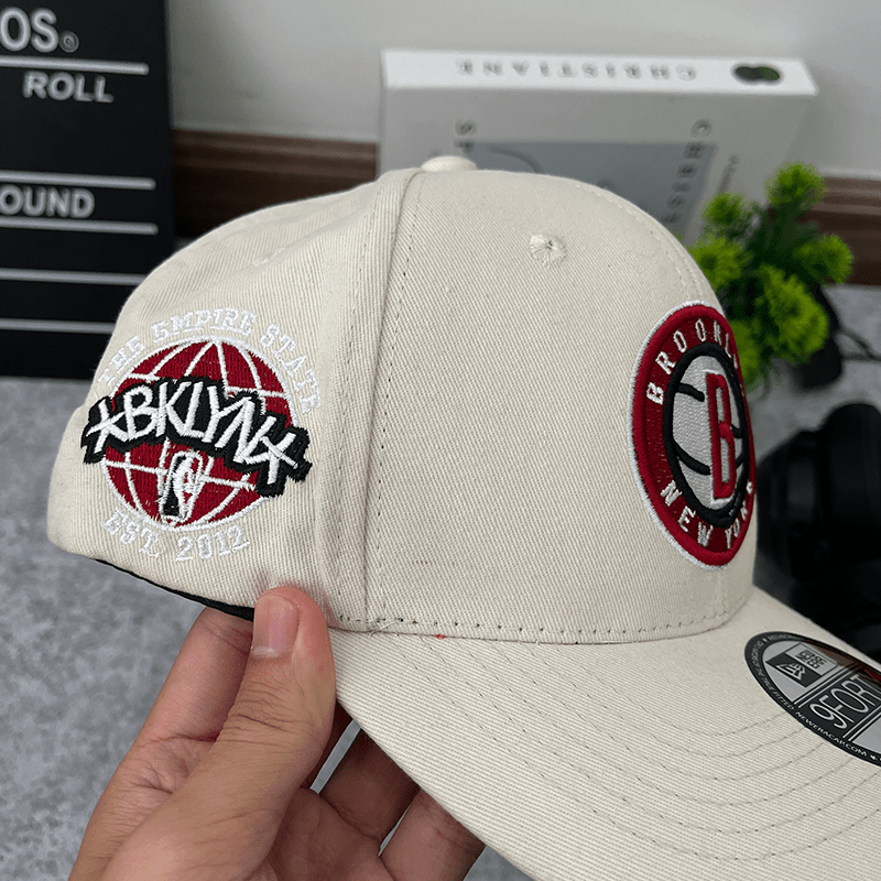 The OFF WHITE Brooklyn Nets Red Bottom The Empire State Side Patch cap is an official New Era product, designed for Brooklyn Nets fans who love stylish and bold accessories. This cap features a boldly embroidered Brooklyn Nets logo on the front, a unique Red Bottom brim, and The Empire State side patch, showcasing New York pride.