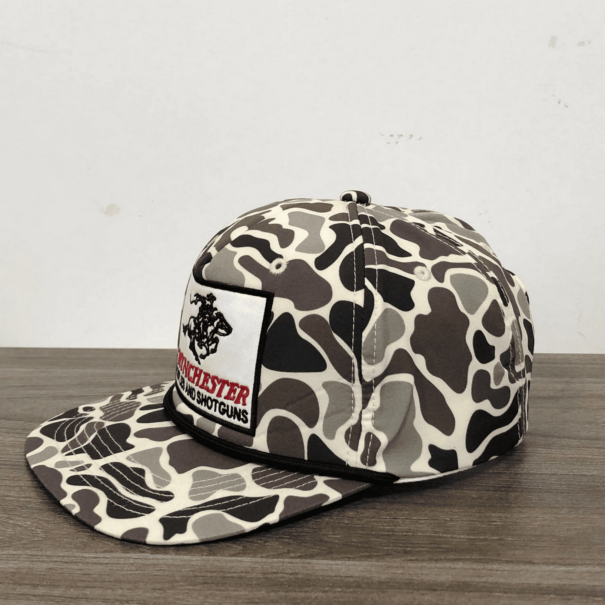 Unleash your wild-west spirit with the Winchester Rodeo Camo Vintage Snapback, a bold and rugged cap designed for those who appreciate classic Western heritage and outdoor adventure. Featuring a striking Winchester Rifles and Shotguns embroidered patch with a galloping cowboy, this hat blends vintage Americana style with a modern camo twist.
